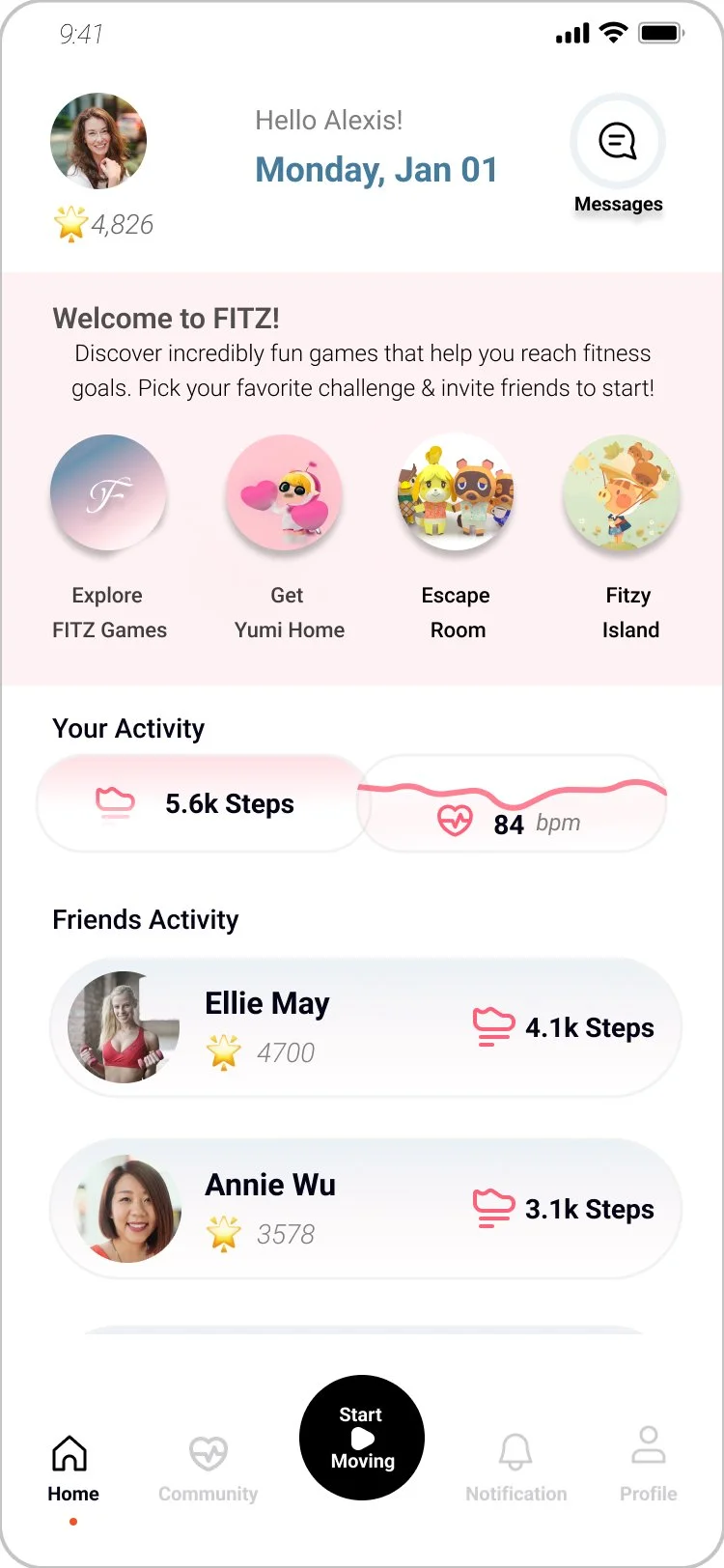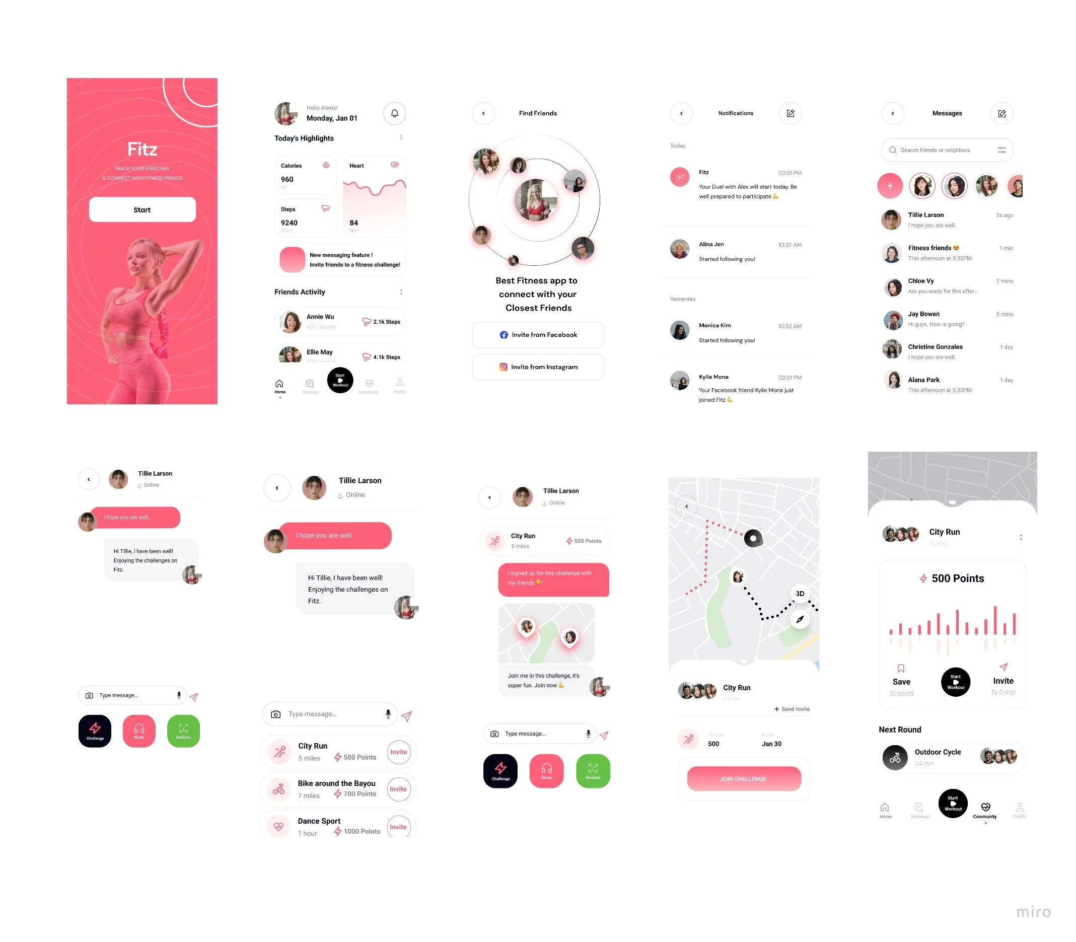We designed an integrated and interactive messaging system that not only allows users to message each other, it also allows them to participate in virtual games to achieve their fitness goals together. Our final design aims to prove that an interactive messaging system built within the fitness tracking app will keep users entertained, which in turn will increase engagement and repeat usage .