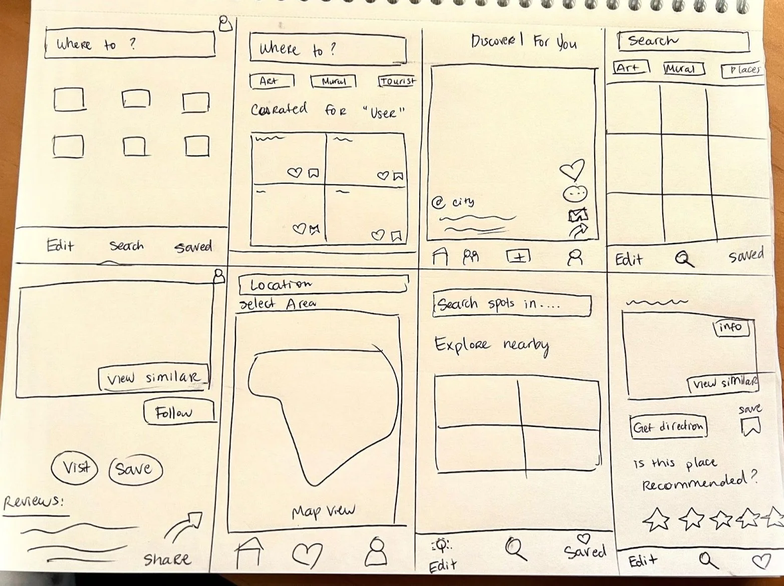 I spent 8 minutes sketching 8 variations of the critical screen ( discover screen) for GramCity.