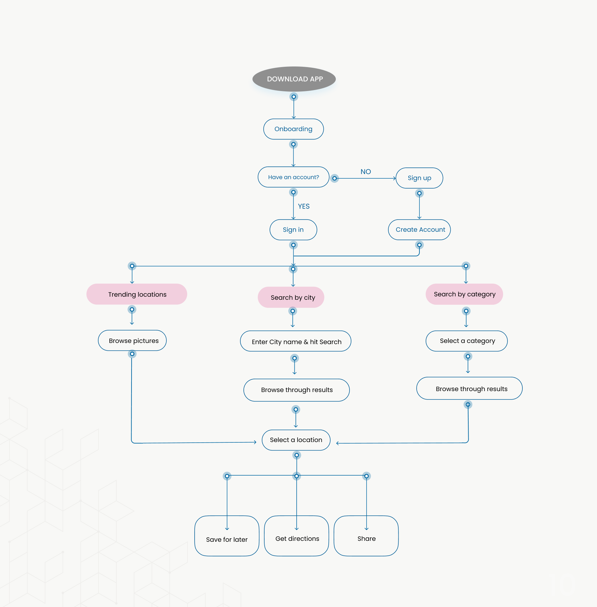 I sketched several possible end-to-end user flows for the search feature and selected the one that aims to answer the HMW questions: