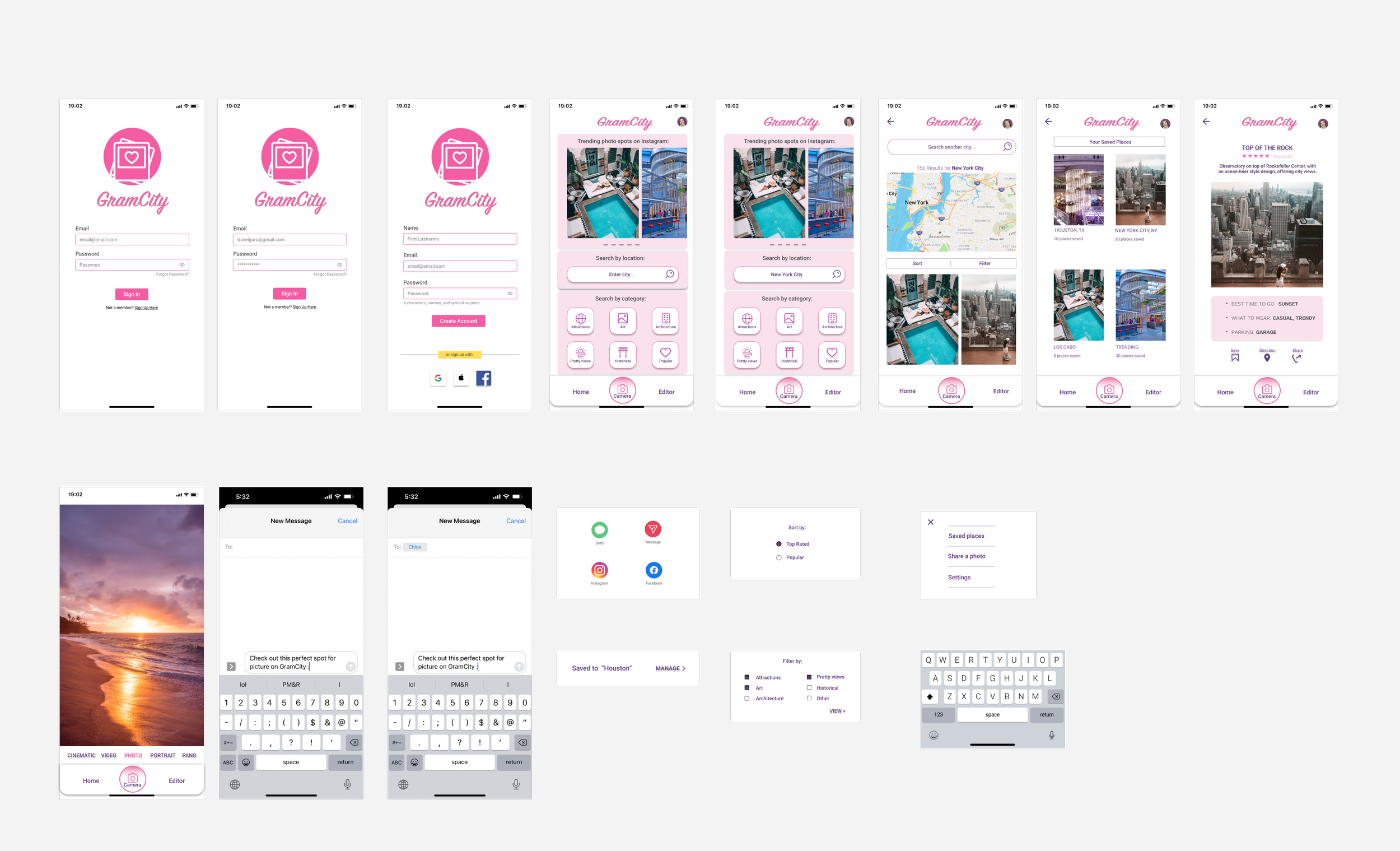 I conducted a Lighting Demos session, starting with 30 minutes of competitive analysis on existing apps on my phone, regardless of the industry. I was looking for design ideas and features that may be helpful to GramCity users’ needs and found great inspiration from Instagram, Pinterest, Spotify, Airbnb, Youtube, Zillow, Robinhood, Tiktok, Uber.