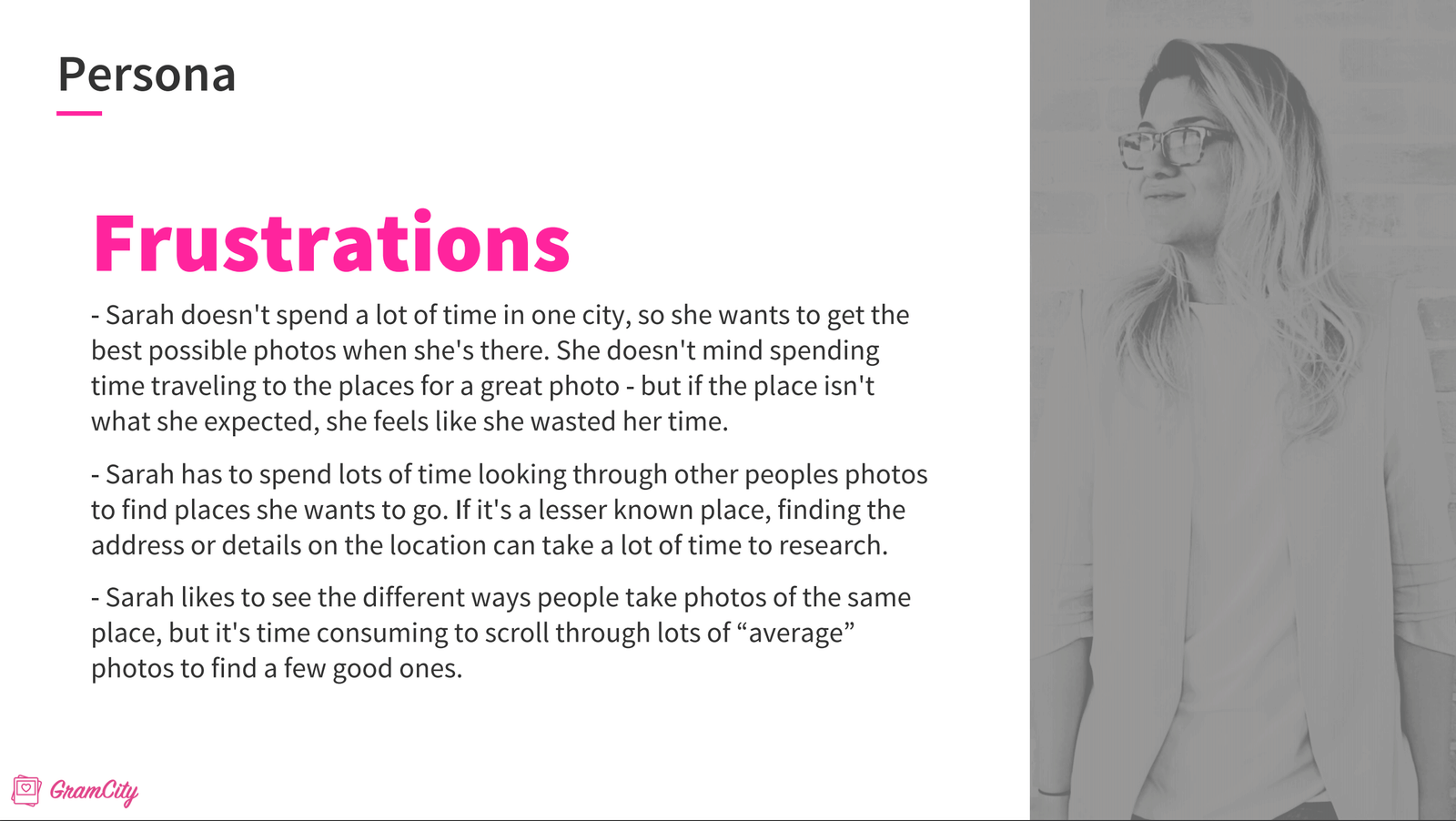 “I want to easily find locations and examples of the best photo ops in a city before planning out my day around visiting them.” - Sarah